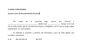 Formato de carta de recomendación en word